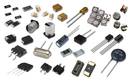 Резисторы, конденсаторы, катушки индуктивности, магнитные шарики, диоды, МOS-транзисторы, танталовые конденсаторы, NPN/PNP транзисторы, кварцевый генератор, мостовые выпрямители, термистор NTC, предохранитель, светодиод...